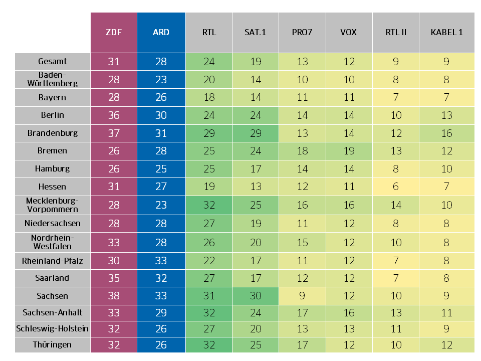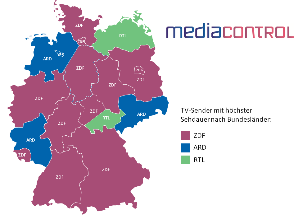 | Die Deutschen gucken am meisten ZDF. Grafik: Media Control GmbH |