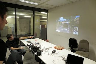 Wofür? BeamNG veröffentlich demnächst auf der Spieleplattform „Steam“ ein eigenes Autorennspiel. Besonders an der Bremer Entwicklung ist die Physik-Engine, die später auch für andere Spiele, beispielsweise Ego-Shooter, verwendet werden könnte. Ob Fischer in Punkto zukünftige Angestellte fündig wurde, mochte er noch nicht verraten. So viel war jedoch klar: Der mitgebrachte Fahrsimulator, auf dem „BeamNG Drive“ in einer Vorabversion getestet werden konnte, war bei den Teilnehmern der ONoC eine willkommene Abwechslung zum stundenlangen Grübeln über Nullen und Einsen.