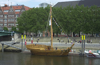 | Die Kogge vor ihrem Untergang. An diesem Platz an der Schlachte soll das Schiff nach seiner Sarnierung wieder liegen. |