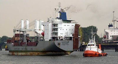 Containerfrachter auf der Unterweser flussabwärts von Bremen. (Foto: Schlie)