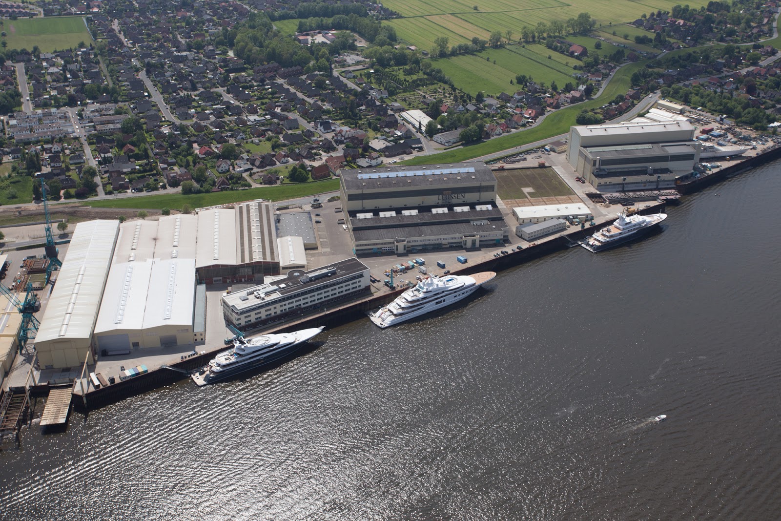 | Die Lürssen-Werft in Bremen-Nord aus der Vogelperspektive |