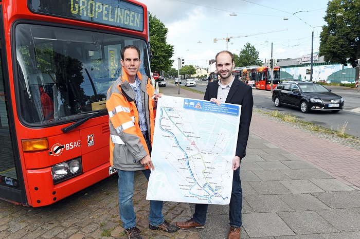 Die BSAG empfiehlt den Fahrgästen daher sich in Richtung Nordstraße zu orientieren.Die geänderten Fahr- und Linienpläne hängen an den Haltestellen aus und sind auch unter www.bsag.de im Internet zu finden.
