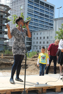 | Sonia aus Nigeria kam mit ihrem Sohn aus dem benachbarten Flüchtlingswohnheim und trug bei der Feier ein Lied vor. |