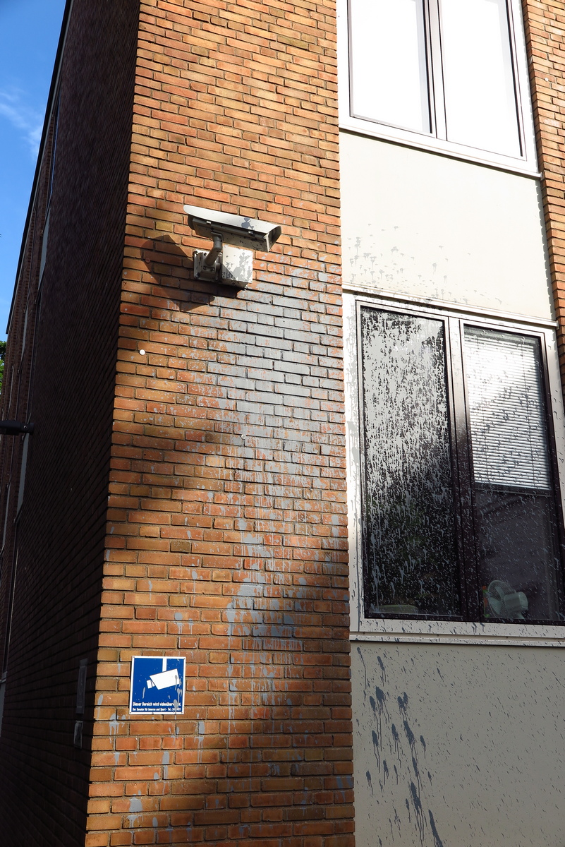Sie warfen Steine und Farbbeutel. Innerhalb von drei Minuten war die Polizei mit mehreren Streifenwagen vor Ort, doch die Täter konnten unerkannt flüchten.