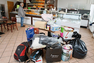 | Eine Sammelstelle für Willkommenspakete beim Bäcker im Nedderland. Foto: Barth |