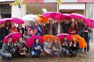 Gute Laune trotz miesen Wetters: Festivalleitung, Gastgeber, Erzähler und Vertreter des Einzelhandels und der Institutionen stellten bereits das diesjährige Programm der Feuerspuren vor. |