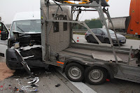 Trotz entsprechender Vorwarnschilder und einer Geschwindigkeitsreduzierung auf 80 km/h hat der Fahrer des Transporters den Sicherungsanhänger übersehen und ist in ihn hinein gefahren. Durch die Wucht des Aufpralls ist der Sicherungsanhänger in die Kehrmaschine geschoben worden. Der 24-Jährige hat sich dabei verletzt und wurde in ein Krankenhaus gebracht.