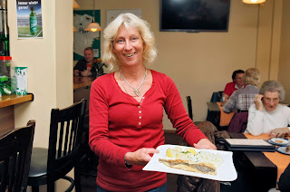 Der Laden zur Mittagszeit proppevoll mit hungrigen und durstigen Gästen? Kein Problem für die herzliche Wirtin, die ihre Gaststätte souverän im Griff hat und dabei auch noch sehr charmant ist.