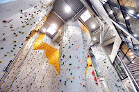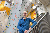 | Georg Schmitz in der neuen Kletterhalle. Foto: Schlie |