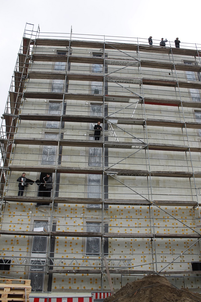 Anders als bei herkömmlichen Richtfesten, wurde bei der Feier ausdrücklich auf die künftige Nutzung und die Nöte der kommenden Bewohner erinnert.