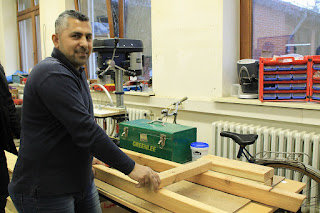 Horst-Peter Witt hat sie mit Maschinen, Werkzeugen und Materialien ausgestattet. Er ist aktives Mitglied der Willkommensinitiative Blumenthal, die sich um alle im Stadtteil ankommenden Flüchtlinge kümmert. Heute wollen die Männer in der Werkstatt auch noch einen Unterstand für die Fahrräder bauen. „Wir verknüpfen die praktische Arbeit mit der Sprache. So lernen sie besser und haben etwas zu tun“, sagt Witt.