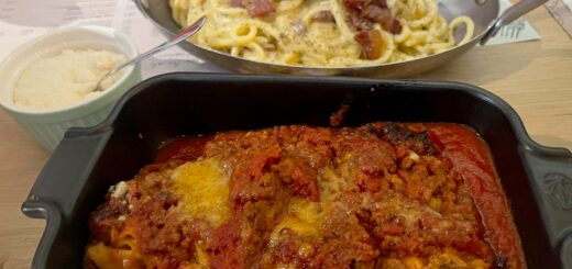 Die kleine (28 Zentimeter) Rucola-Pizza kostet 11,80 Euro und ist laut Karte bestückt mit würziger Tomatensauce, Mozzarella, schlaffem Rucola, Kirschtomaten und frisch gehobeltem Grana Padano sowie „Serrano-Putenschinken“. Letzteres haben wir so noch nie gehört. Optisch gehen wir von normalem Putenschinken oder Putenlachsschinken aus. Der Beiname „Serrano“ (abgeleitet von sierra, dem spanischen Begriff für Gebirge) wird sonst eigentlich nur in Zusammenhang mit Schweinefleisch verwendet – das hier aber wohl nicht serviert wird. Der Pizzaboden schmeckt gut, ist aber unterschiedlich dick. Auch hätte er gerne noch eine Minute länger im Steinofen bräunen können, so bleibt er recht blass. Der Grana Padano ist leider nicht frisch gehobelt, sondern so fein gerieben, wie man es von Fertigprodukten kennt. Schade.
