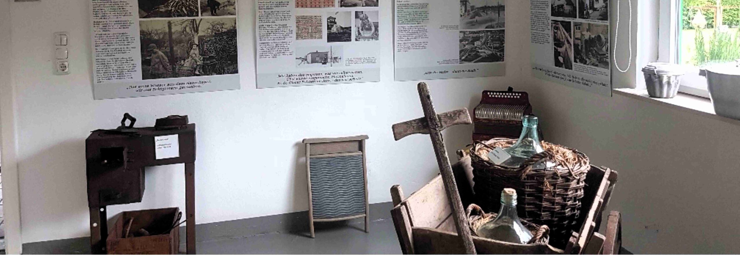 In vier Ausstellungsräumen können Besucher anhand von Originalexponaten in die Zeit des Überlebenskampfes und des Wiederaufbaus eintauchen. Mitarbeiter geben bei Bedarf kleine Einführungen, liebevoll eingedeckte Tische und selbstgemachter Kuchen laden zu einer Kaffeepause im Garten ein.