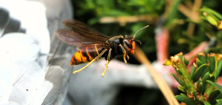Sichtungen der asiatischen Hornisse (am besten mit Foto) und deren Nester kann man unter velutina.info oder das Monitoring Portal neobiota-nord.de melden.