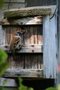 Dieser Sperling hat Glück gehabt und eine geeignete Nisthilfe gefunden. Der Nachwuchs wartet bereits auf Futter. Foto: Bollmann