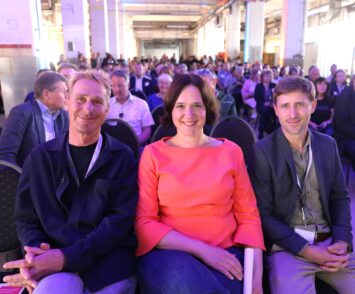 Kurz vorm Start der Flusswasserpumpe an der Weser. Umweltsenatorin Kathrin Moosdorf eröffnete sie mit den Geschäftsführern von Stadt.Energie.Speicher, Klaus Meier (l,) und Tobias Werner auf der Überseeinsel.