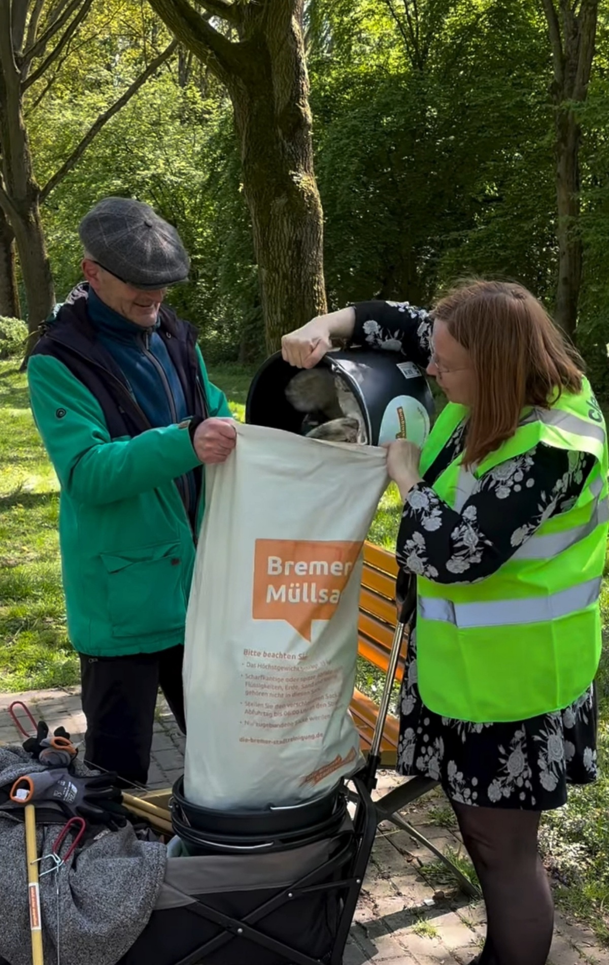 Die Eimer, Säcke, Handschuhe und Zangen stellt die Bremer Stadtreinigung zur Verfügung, außerdem Westen mit dem Logo der Gruppe. „Ich sorge mit Unterstützung von anderen Stadtteilakteuren auch für Getränke und Obst zur Stärkung. Hinterher kommen wir zusammen und besprechen, wo es im nächsten Monat weitergehen soll“, beschreibt Buß die Vorgehensweise.