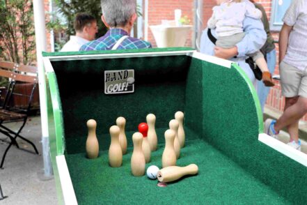 Zwar werden die Handgolf-Stationen erst am 5. Juli eröffnet, bereits seit dieser Woche kann man sich aber unter handgolf.de die Karten bequem online buchen. Und nach dem Spiel laden erfrischender Eiskaffee, köstliche Crêpes, herzhafte Flammkuchen und leckeres Eis für die Kinder im gemütlichen Innenhof zum Verweilen ein – ganz barrierefrei.