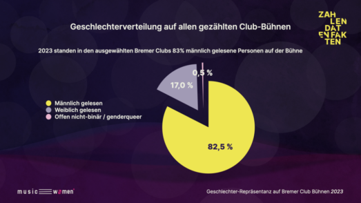 „Mit validen Zahlen kommen wir weiter als mit gefühlten Wahrheiten“, betont Anke Königschulte, Projektkoordinatorin von „musicHBwomen*“. In Kooperation mit dem Bremer Clubverstärker erarbeitete das Netzwerk die erste Studie zur Repräsentanz der Geschlechter auf Bremens Bühnen.