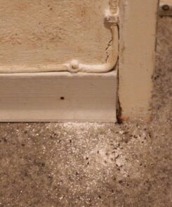 Nach dem Schmutzwasserschaden hat die Seniorin bereits Probleme mit Schädlingsbefall gehabt: Waren es zunächst Abortfliegen (die Krankheiten übertragen können), gelangten zuletzt Ameisen aus Rissen in den innenliegenden Wänden in die Wohnung. Und an fast allen innenliegenden Wänden kann man auf einer Höhe bis zu 40 Zentimetern noch erkennen, dass die Wände Feuchtigkeit gezogen haben.