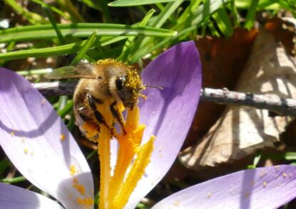 Diese Honigbiene ist schon besonders stark mit dem Sammeln von Pollen und Nektar beschäftigt. Foto: Bollmann