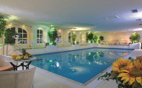 Das Hotel verfügt über einen 1.800 Quadratmeter großen Wellness-Bereich mit großer Badelandschaft.