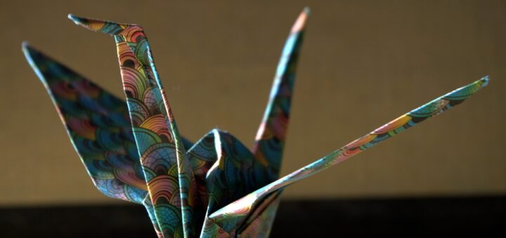 Der Origami-Kranich nimmt dabei Bezug auf ein kleines Mädchen, das im Zuge des Atombombenabwurfs auf Hiroshima an Krebs erkrankt war und jung starb. Falte man 1.000 Kraniche aus Papier, so könne man sich einen Wunsch erfüllen, lautet ein japanischer Volksglaube. Das Mädchen starb jung, das von ihr gefaltete Symbol für Hoffnung, Leben und Tod blieb.