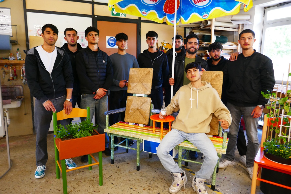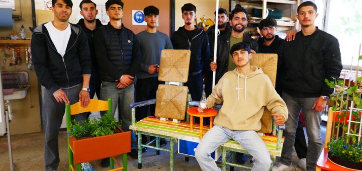 Die Schulabschlussklasse der Jugendwerkstatt Osterholz stellte ihr Projekt „Upcycling“ vor und präsentierte Ideen und Werkstücke aus aufbereiteten Abfallprodukten, wie Sperrgut und anderen Wertstoffen, die in den vergangenen Wochen und Monaten in Kooperation mit dem Abfall Service Osterholz (ASO) entstanden waren.