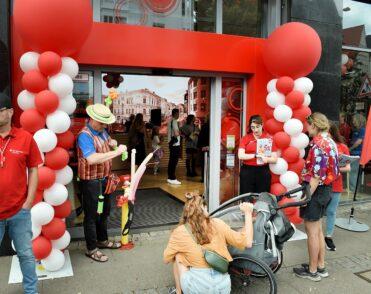 Im Viertel begeistert eine Zuckerwattemaschine die Kinder ebenso wie ein Ballonkünstler. Er zaubert verschiedenste Kunstwerke für sie: farbenfrohe Hüte, Armbänder, Tiere und Pflanzen. Auch der ein oder andere Erwachsene Gast läuft mit einem bunten Ballonarmband am Handgelenk durch die Filiale.