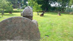 Der Sliekpadd ist mit kleinen gelben Schneckensymbolen gekennzeichnet. Zusätzlich zur im Flyer abgedruckten Karte gibt es also wenig Möglichkeit, sich zu verlaufen. Sollte man meinen, denn schnell sind die Wegsymbole mal übersehen. Im schlimmsten Fall kommt man aber nur unerheblich vom Weg ab. Los geht es von der Tourist-Information die Lindenallee hinauf. Entlang der Großen Kunstschau kommt man auch bald zur ersten Sehenswürdigkeit, dem Steinkreis. Ein hierzu angebrachtes Schild sucht Spaziergänger auf eine Zeitreise mitzunehmen.
