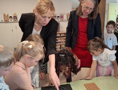 „Kinder lernen am meisten von null bis sechs Jahren“, erklärte Bildungsministerin Karin Prien bei ihrem Antrittsbesuch in Bremen. Unter anderem deshalb imponiere ihr das Kinder-und Familienzentrum Waller Park: „Eine anregende Einrichtung.“ Nach dem Eintrag ins Goldene Buch bei Bürgermeister Andreas Bovenschulte, besuchte sie mit Bildungssenatorin Sascha Aulepp die Anlage im Grünen. Prien betonte dort: „Es gibt in Bremen große soziale Probleme, die gelöst werden müssen – darüber sprechen wir heute.“ Auch auf das Thema „Obergrenze für Schüler mit Migrationshintergrund“ ging sie ein. Man könne alle möglichen Dinge ausprobieren. Da müsse man wirklich schauen, „funktioniert das oder funktioniert das nicht“. Es sei wissenschaftlich überhaupt nicht evaluiert. Die ehemalige Kultusministerin von Schleswig-Holstein maße sich nicht an, „anderen kluge Vorschläge zu machen.“ Sie befürworte aber den Blick über den Tellerrand. Es gehe ihr nicht um Ausgrenzung, „aber es geht um eine Verteilung von Kindern auf Schulen.“
