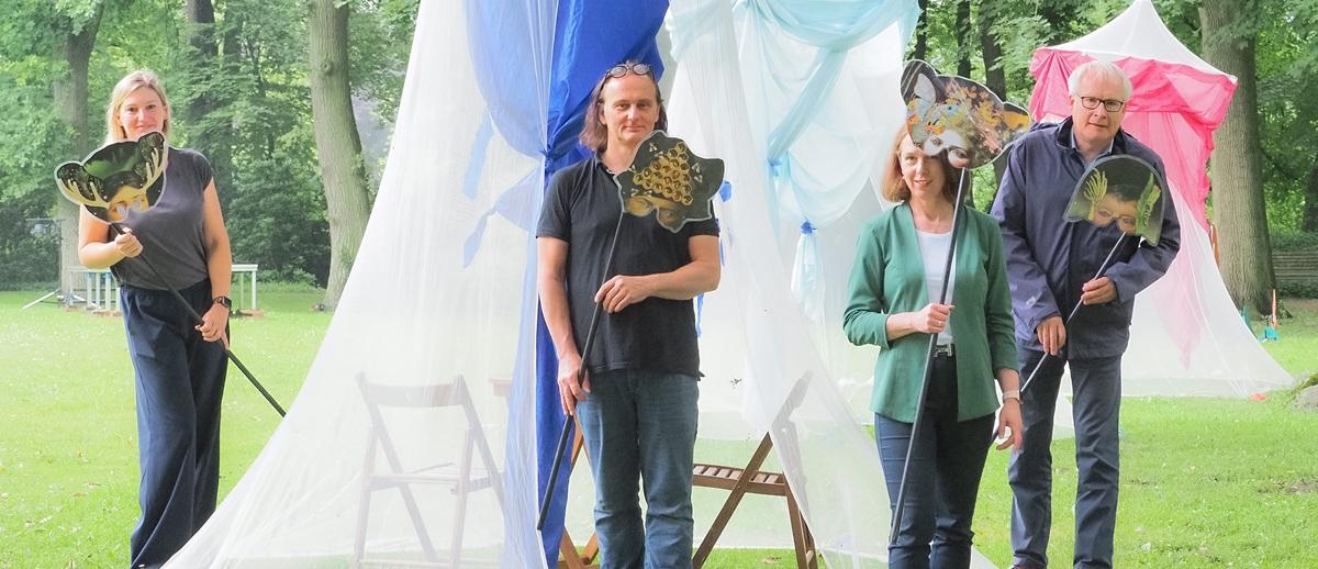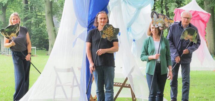 „Die Besucher sind Teil der Inszenierung“, so Ann-Katrin Albers vom Kulturbüro der Stadt Delmenhorst. Beim Betreten des Geländes erhält man eine Maske, deren Bedeutung in einem Orakelzelt vermittelt wird. Dort erfährt man auch, welche Aufgabe man bekommt. Während des Abends gibt es Preise zu gewinnen, wobei man seinen Gewinn – es sind immer zwei Stück – mit jemandem teilt, den man nicht kennt. „Es geht um Begegnung, auf eine spielerische Art und Weise“, erklärt Stefan Behr, künstlerischer Leiter des Theaters Anu und Autor. Auf vier Schattenwänden mit Schattenfiguren wird der Ballsaal dargestellt. Die Schauspieler spielen in diese Kulisse hinein.
