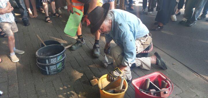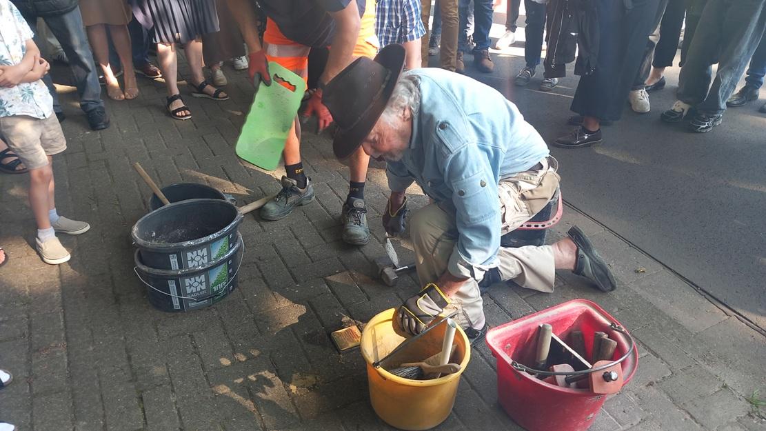 Zur Verlegung der ersten Stolpersteine in Hambergen versammelte sich eine doch beträchtliche Menge an Menschen. Nicht zuletzt lag das daran, dass der erste Stein Anni Knipp-Gustavsson gilt. Verwandtschaft aus Schweden und den USA war hierfür extra angereist. Hans-Gunnar Gustavsson, der Sohn, bedankte sich in einer Rede im Namen der gesamten Familie und betonte, dass ihnen die Verlegung viel bedeute. An insgesamt fünf Orten verlegte die Stolperstein Initiative Landkreis Osterholz am 11. Juli Gedenksteine.Dabei legte der deutschlandweit aktive Künstler Gunter Demnig selbst Hand an. Zur ersten Verlegung in einem Ort sei der Künstler gern selbst anwesend, so Mitglieder der Stolpersteininitiative.