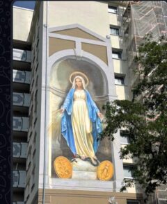 An dem Gebäude befindet sich jetzt auch eine zwölf Meter hohe Maria-Abbildung. Foto: pv