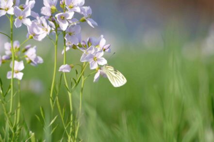 Elisabeth Solte fotografierte dieses Wiesenschaumkraut mit Falter – das April-Motiv des Kalenders. Foto: Solte
