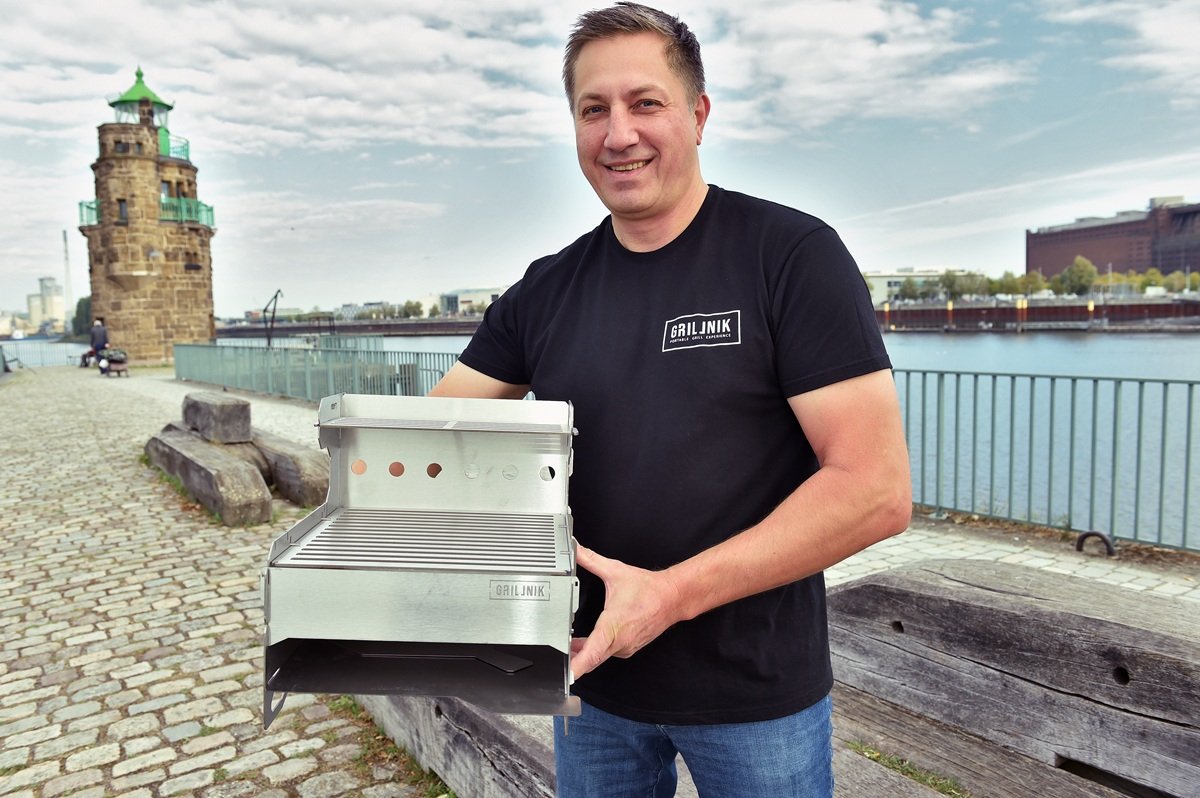 Bratwurst und Gemüsespieße am Osterdeich oder Steak und Grillkäse am Werdersee – in Bremen wird viel und gerne an öffentlichen Orten gegrillt. Mit dem mobilen „GrillNik“ hat Paul Nikonow seit kurzem eine praktische Alternative zu klapprigen Dreibein- und umweltschädlichen Einweggrills ausgetüftelt. Seinen zusammensteckbaren Grill aus Edelstahl stellt Nikonow vom 3. bis zum 5. Oktober auf der Messe GrillGut auf der Bürgerweide vor.