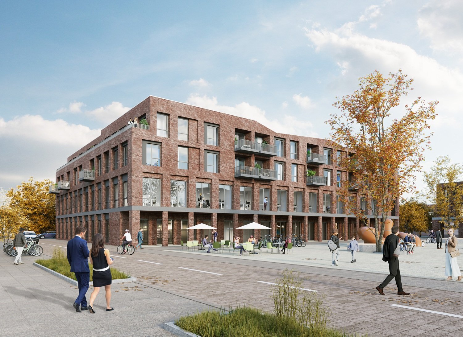 Als ein zentrales Element des neuen Ortskerns soll nach Angaben der Sprecht Guppe ein viergeschossiges Gebäude mit moderner Wärmepumpentechnologie und Photovoltaikanlage auf dem Dach entstehen. In den beiden oberen Stockwerken sind 32 unterschiedlich große Wohnungen mit einer Fläche von 37 bis zu 99 Quadratmetern geplant, teilweise mit Balkon. Das Erdgeschoss bietet Raum für zwei Gewerbeeinheiten, darunter auch Gastronomie, auf einer Fläche von rund 400 Quadratmetern. Außerdem werden das Beratungscenter Brinkum sowie das Firmenkundencenter Nord der Kreissparkasse Diepholz dort einziehen.