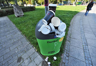 | Pappbecher überfüllen einen Eimer Foto: Schlie |